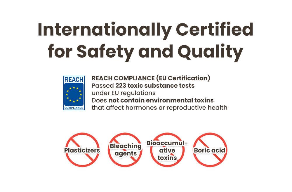 Non-toxic & Safe: Passed 223 EU REACH inspections; free from heavy metals and Substances of Very High Concern (SVHC).